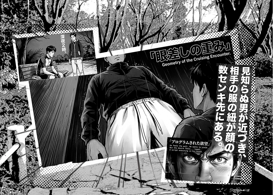 The story is loosely adapted from the internet “scandal” covered on the Identity page, but it isn’t a courtroom reconstruction. It uses the incident—and the endless, thirsty commentary that followed—as raw material for something else: a study of consent, boundaries, and what it means to live in a world where your face is public property and your private moments are always one bad decision away from becoming content. At one point, the sentient model goes looking for his “creator” and finds, instead of a god, a tired guy at a laptop in Nishinomiya, which turns digital creationism into a small, human joke and leaves him haunted by his own data.